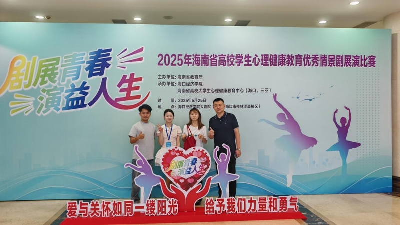 5月25日,2025年海南省高校学生心理健康教育优秀情景剧展演比赛在海口经济学院举行,我校心理情景剧《逃尺》荣获一等奖,学校获评优秀组织奖。