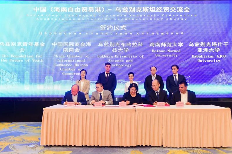 6月4日,由中国国际贸易促进委员会海南省委员会、乌兹别克斯坦世界青年协会主办的中国(海南自由贸易港)-乌兹别克斯坦经贸交流会在海口举行。来自海南省青年联合会、乌兹别克斯坦世界青年协会的代表,乌兹别克布哈拉创新大学、乌兹别克塔什干亚洲大学、海南师范大学以及其他领域企业代表100余人齐聚一堂,共商合作新机遇。