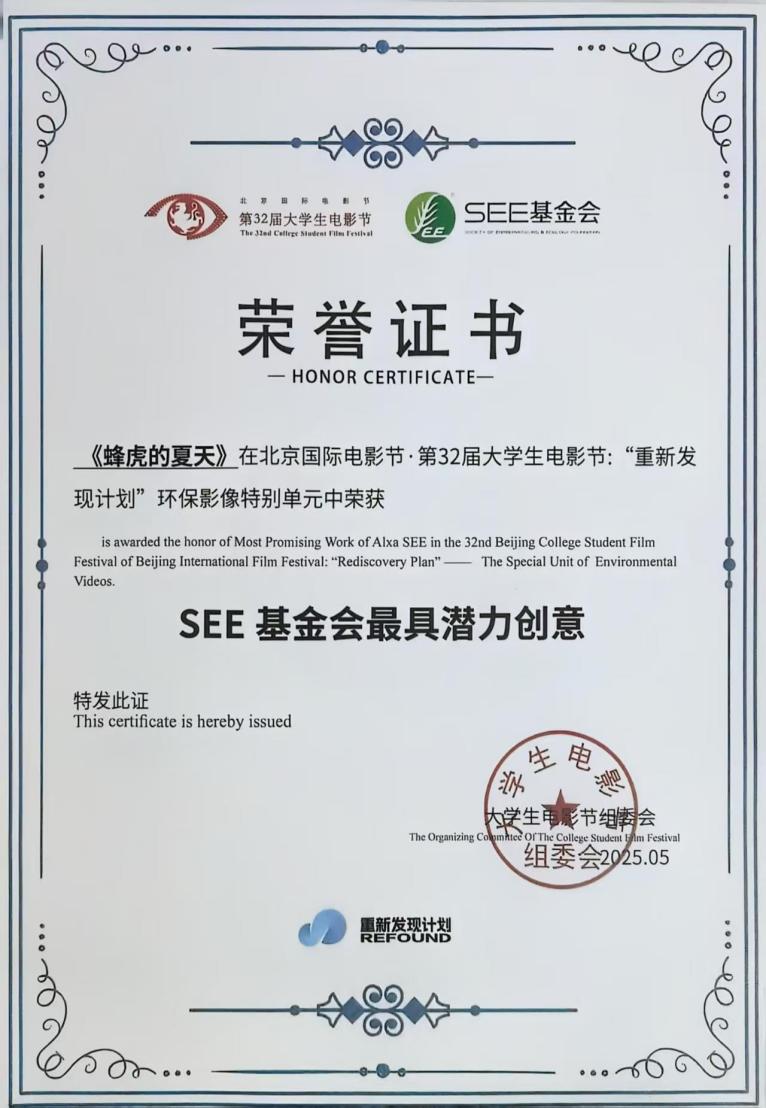 近日,由海南师范大学新闻传播与影视学院学生创作的纪录片《蜂虎的夏天》,荣获北京国际电影节第32届大学生电影节“重新发现计划环保影像特别单元”“SEE基金会最具潜力创意”奖项。这也是我校学子首次在北京大学生电影节“重新发现计划环保影像特别单元”获奖。
