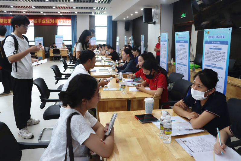 6月17日,2025年“海南学子 就在海南”留才行动海南师范大学2025届毕业生对接招聘会在桂林洋校区大学生活动中心举行。校党委书记许玫、副校长徐基良出席,党政办公室、招生就业处等职能部门、部分学院负责人、辅导员参加活动。