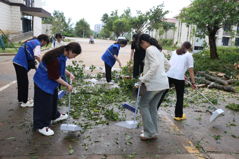 受强台风“麦德姆”的影响,我校桂林洋、龙昆南校区多处树木倒伏、残枝败叶散落。为加快恢复校园正常秩序,10月6日上午,学校迅速组织师生力量开展垃圾清运与道路清障工作,切实筑牢校园安全防线。