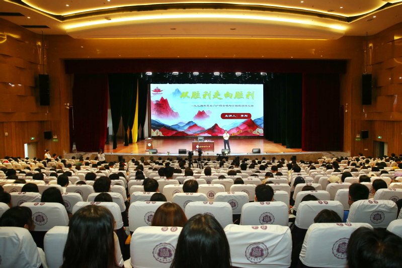 据悉,本期“榕树讲坛”由我校与海南省社会科学界联合会联合主办,通过海南广播电视总台同步线上直播。讲坛延续“高规格、深内涵、广影响”定位,通过“艺术+思政”创新形式,让爱国主义教育转化为可听、可看、可感、可参与的生动体验,实现艺术教育与思想政治教育同频共振,为推动学校思想政治教育工作高质量发展、建设特色鲜明的高水平师范大学注入源源不断的红色活力。