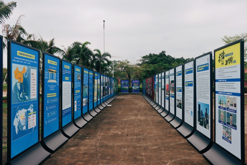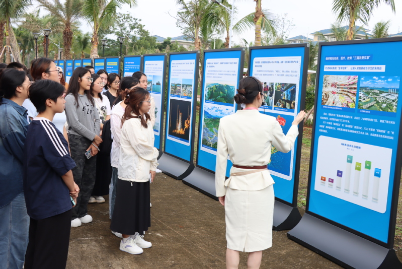 会场外同步设置图片展览,以丰富图文呈现海南自贸港在政策构建、“三区一中心”建设等领域的标志性成果,生动还原从“国家战略”到“实践落地”的奋斗历程,配套主题打卡点及政策知识答题抽奖互动活动,让师生在沉浸式体验中感受自贸港建设实践、深入了解封关政策。