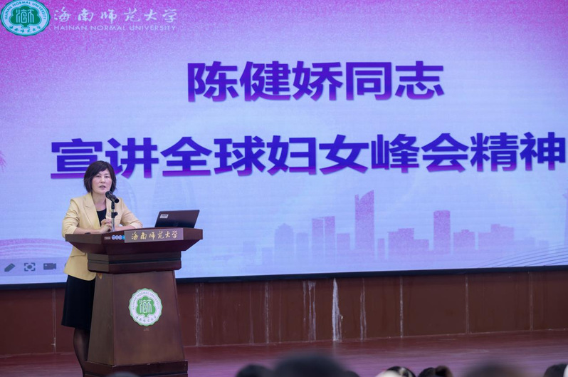 陈健娇以《全球妇女峰会精神——“我们都是女主角”》为题进行宣讲