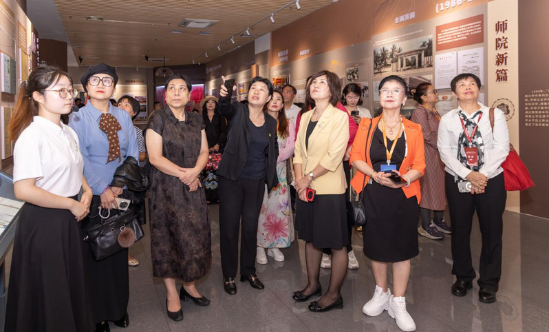 宣讲会后,校党委书记许玫陪同陈健娇,以及来自美国、英国、阿根廷等11个国家的侨界妇女代表参观了我校校史馆,深入了解我校76年来扎根海南、服务社会的办学历程、教育使命和文化底蕴。