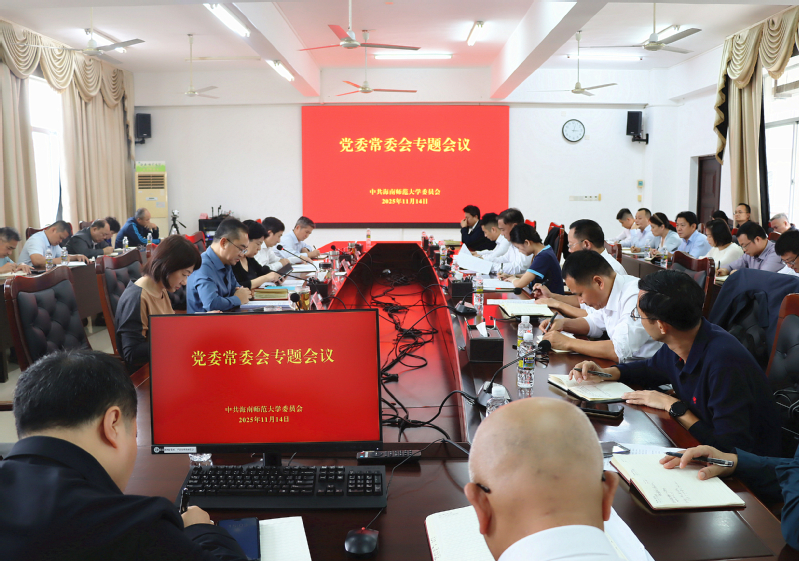 11月14日下午,我校在桂林洋校区第一公共教学楼三楼会议室召开党委常委会专题会议,传达学习海南省教育厅关于校园安全工作要求,安排部署学校安全稳定工作。校党委常委许玫、聂清斌、符刘才、杨兹举、王瑜出席,学校维护安全稳定工作领导小组成员单位负责人,各学院、附属单位负责人列席会议。会议由校党委书记许玫主持。