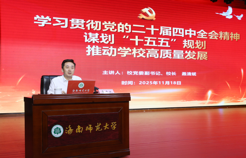 聂清斌要求全校党员干部师生要更加紧密地团结在以习近平同志为核心的党中央周围,坚定拥护“两个确立”、坚决做到“两个维护”,切实把思想和行动统一到党的二十届四中全会精神上来,要对标对表《建议》做好学校的“十五五”规划,团结一心,以奋进之姿,坚决扛起使命担当,努力建设一流师范大学,为加快建设教育强国、科技强国、人才强国,全面推进中国式现代化、实现中华民族伟大复兴贡献智慧和力量!