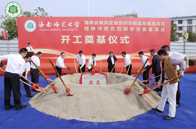 11月18日上午,我校海南省教师发展协同创新实验基地项目及四期学生食堂项目开工典礼在桂林洋校区举行。校党委书记许玫宣布项目正式开工。校长聂清斌、副校长张引,桂林洋开发区管委会、江东新区管理局等领导和嘉宾共同为项目奠基石培土。开工典礼由张引主持。