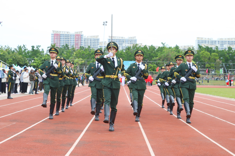 在激昂的旋律中,国旗护卫队庄严入场,校旗护卫队、护旗方队、标语牌方队、红旗方队和鲜花方队紧随其后,步伐铿锵,气势如虹,瞬间点燃全场热情。随后,裁判员、各学院及教辅单位代表队依次入场,师生们精神抖擞、身姿挺拔,坚定的目光与挺拔的身姿,展现出海师人的蓬勃朝气。各学院方阵创意纷呈,尽显专业特色与青春风采:文学院方阵携诗词雅韵,意气风发,以拼搏之姿诠释文者风华;信息科学技术学院方阵步伐精准、气势夺人,赢得阵阵喝彩;历史学院方阵身着汉服与旗袍,宛若从历史深处款款走来,成为跑道上的亮眼焦点……每一个方阵都将海师学子无畏进取、多彩绚丽的青春展现得淋漓尽致。