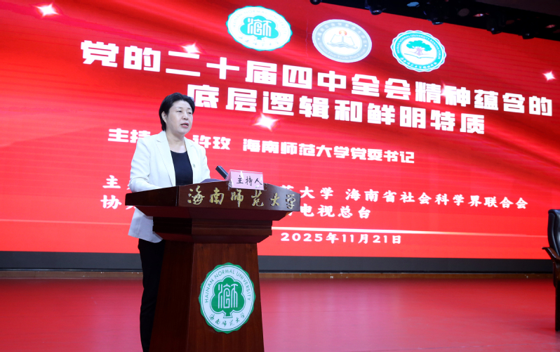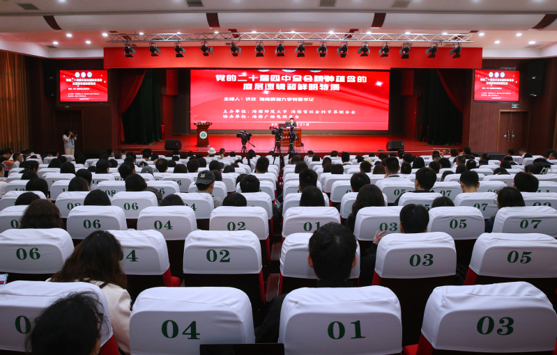 本次讲坛由我校与海南省社会科学界联合会联合主办,通过海南广播电视总台同步线上直播。校领导符刘才、杨兹举、王瑜、刘汝兵出席,机关教辅部门负责人、各学院党政领导、马克思主义学院与经济与管理学院师生代表以及学校民主党派骨干教师近400人参加讲座。