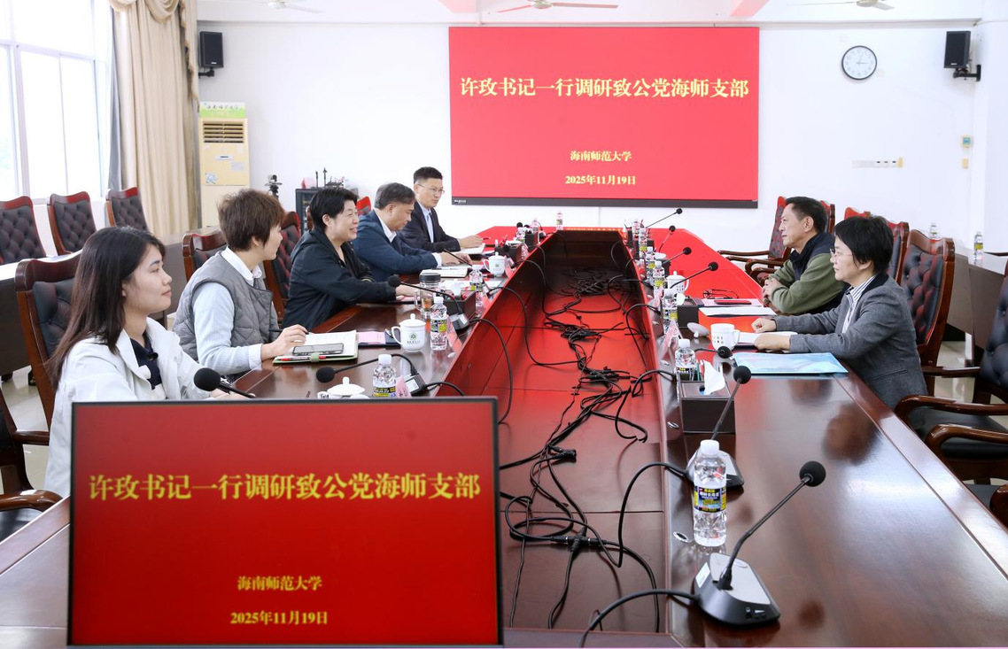 11月19日下午,校党委书记许玫一行到致公党海南师范大学支部调研座谈。座谈会在桂林洋校区第一办公楼三楼会议室举行。