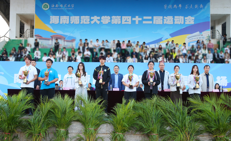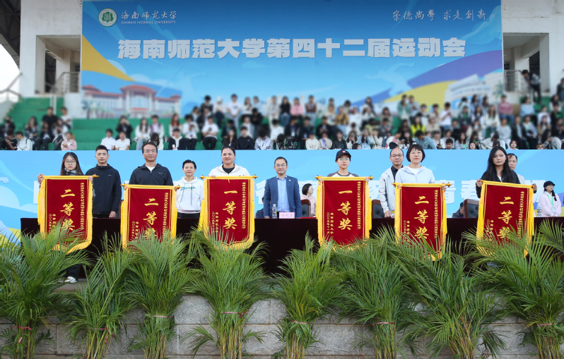 闭幕式上宣布了比赛成绩。数学与统计学院、物理与电子工程学院、教育学院分别荣获甲组冠军、亚军、季军,2025级运训2班、2025级体教1班、2024级体教1班分别荣获乙A组冠军、亚军、季军,2025级高尔夫班、2025级社体班、2024级社体班分别荣获乙B组冠军、亚军、季军,海师附中、海师附小、机关联队分别荣获教工组第一名、第二名、第三名。本次校运会中,共有7位运动员的成绩破校记录。地理科学与环境学院、历史文化学院、马克思主义学院、化学与化工学院、信息科学技术学院、文学院、生命科学学院及国际教育学院获“精神文明奖”。校领导分别为获奖单位代表颁发奖项。