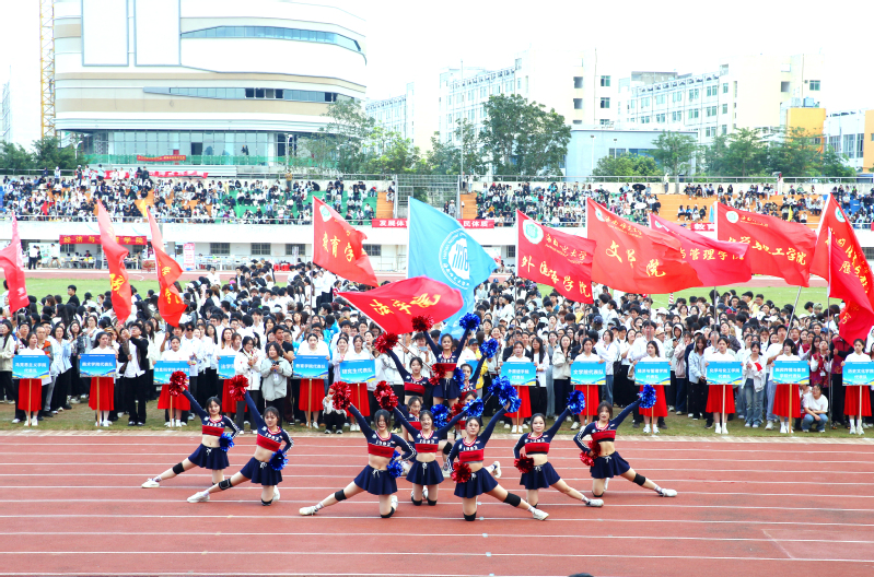 在热烈激昂的氛围中,法学院、地理环境与科学学院、外国语学院、经济与管理学院、文学院啦啦操队依次登场,以跃动的旋律和充满活力的舞步点燃全场。