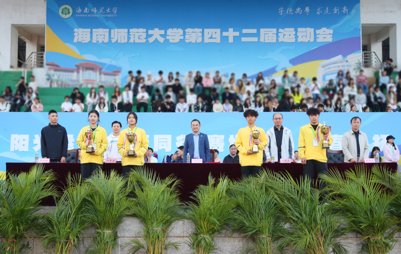 符刘才代表学校向本届运动会获得优异成绩的单位、运动员表示祝贺,向为运动会付出辛勤劳动的全体工作人员表示感谢。他指出,本届运动会充分展现了新时代海师人朝气蓬勃、昂扬向上的精神面貌,是学校坚持立德树人、培养德智体美劳全面发展人才的生动实践。希望全校师生将赛场上展现出的拼搏精神、顽强意志和团队意识融入今后的学习、工作和生活中,为创建一流师范大学、服务海南自贸港建设贡献智慧和力量。