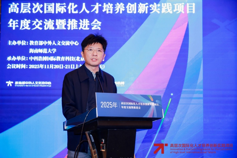 11月20至21日,2025高层次国际化人才培养创新实践项目(以下简称“高层次项目”)年度交流暨推进会在海口举行。会议通过专题报告、经验分享、圆桌研讨及专家指导等多形式,总结高层次项目年度成果,交流思想与经验,共商高层次国际化人才培养新路径。