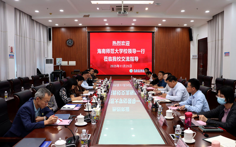 许玫详细介绍了我校当前重点马院建设、学科建设、人才培养等情况,重点分享了我校特色党建引领学科发展的经验和成效。她指出,两校应立足海南自由贸易港建设战略需求,紧扣国际教育创新岛发展定位,充分整合优势资源,创新“资源共享、优势互补、协同发展”的合作模式,在特色人才培养、教育质量提升等方面精准发力,共同为自贸港教育事业高质量发展贡献力量。