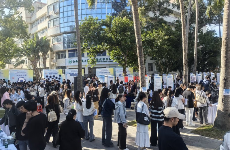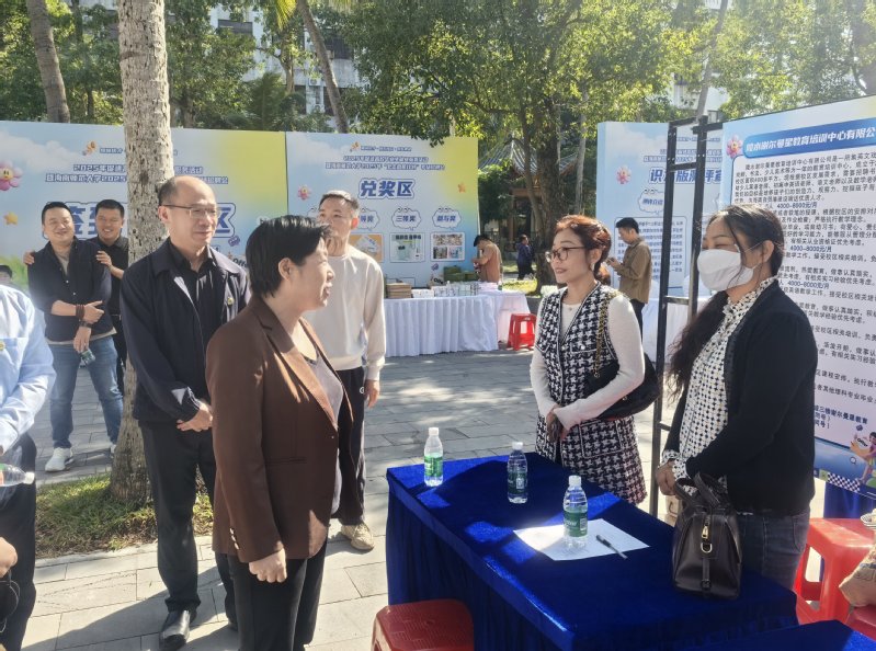 11月25日下午,海南师范大学2025年“宏志助航计划”专场招聘会在龙昆南校区椰林广场举行。校党委书记许玫、副校长徐基良来到招聘会现场,与各企事业代表及招聘人员进行交谈,了解各单位招聘情况、用人需求以及学生就业发展前景。
