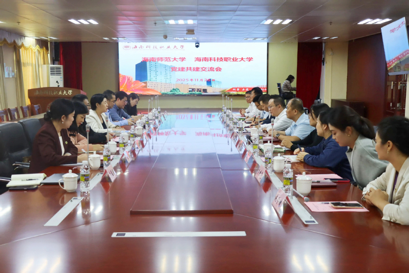 11月26日下午,校党委书记许玫、党委副书记符刘才带队赴海南科技职业大学开展“1+4”党建共建联建工作。会议由海南科技职业大学党委书记杨海主持。