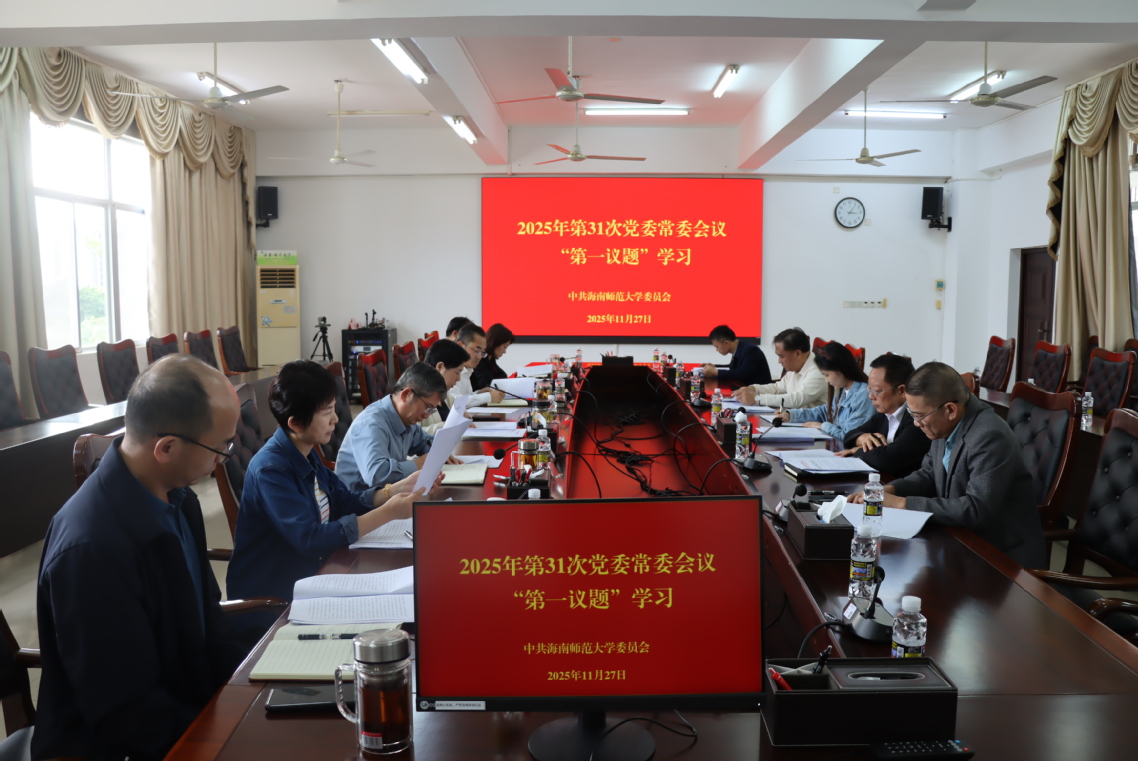 11月27日,学校党委常委会召开2025年第31次会议,传达学习习近平总书记近期重要讲话、重要批示精神及省委书记冯飞同志在海南自由贸易港封关运作动员大会上的讲话精神,研究贯彻落实意见。校党委书记许玫主持会议。
