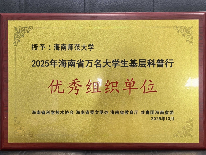 近日,海南省科学技术协会发布《关于表扬2025年海南省万名大学生基层科普行活动优秀组织单位、优秀科技志愿团队及优秀科技志愿者的通报》,我校荣获多项荣誉。