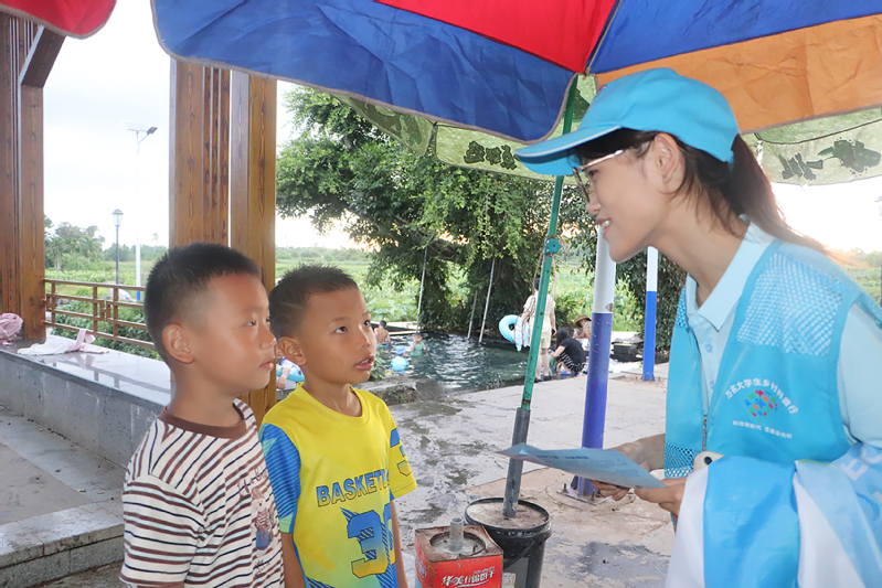 “教燃星火•育光启航”教育关爱综合服务团志愿者面向青少年开展暑期防溺水科普活动