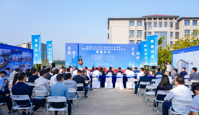 海南省建设项目规划设计研究院有限公司、海南省建设投资集团有限公司等10家建设单位负责人,我校相关职能部门、学院负责人参加奠基仪式。