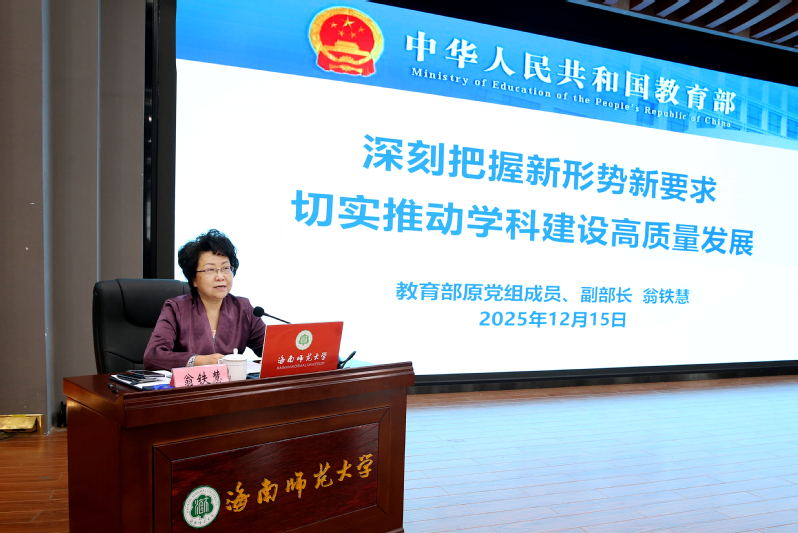 12月15日下午,第十四届全国政协委员、提案委员会委员,教育部原党组成员、副部长翁铁慧应邀到我校桂林洋校区图书馆一楼报告厅作专题辅导报告。教育部学生中心调查评价处处长陈朝辉,我校党政领导班子成员许玫、聂清斌、符刘才、王瑜、刘汝兵、徐基良出席,全体中层干部及机关各部门干部共300余人共同聆听报告会。报告会由校长聂清斌主持。