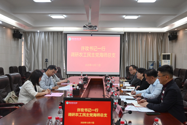 12月17日下午,校党委书记许玫一行到农工民主党海南师范大学总支调研座谈。座谈会在龙昆南校区第一办公楼一楼会议室举行。