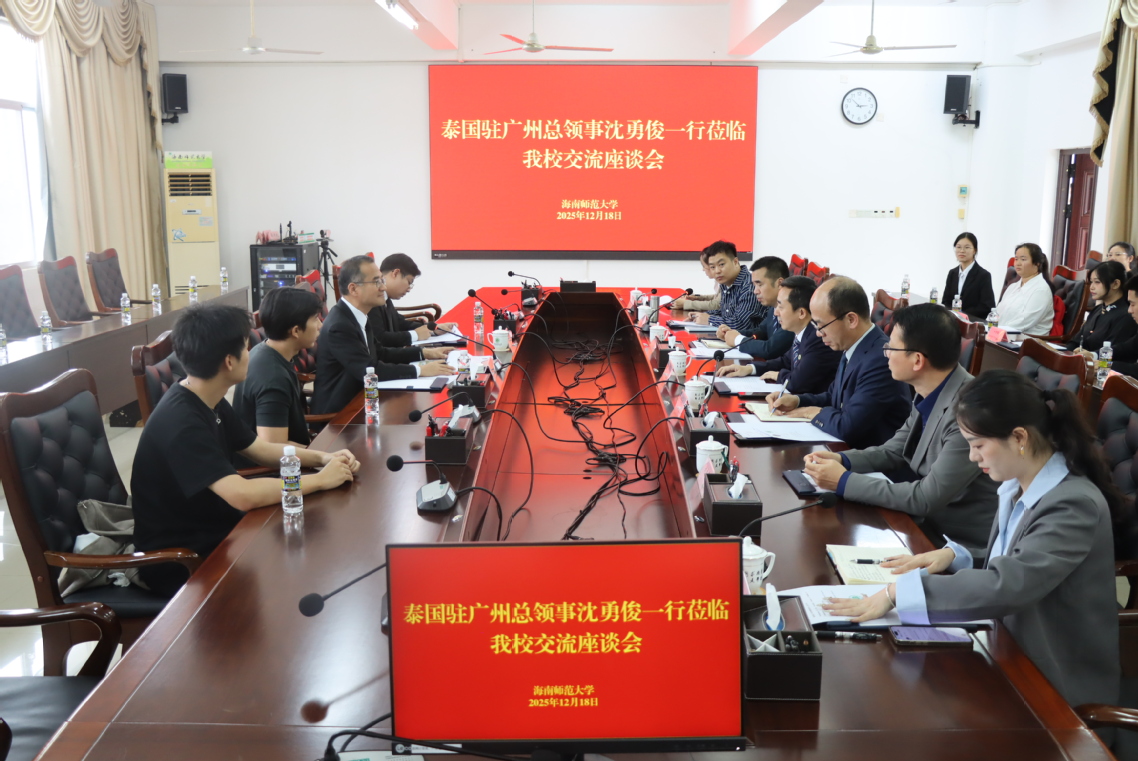 12月18日,泰国驻广州总领事馆总领事沈勇俊先生一行到我校桂林洋校区访问交流。校长聂清斌、副校长徐基良热情接待来访嘉宾,双方围绕深化中泰教育合作、促进人文民心相通等核心议题,展开务实深入的座谈交流。