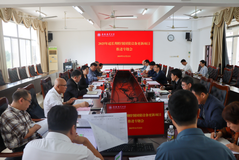12月22日上午,校党委书记许玫在桂林洋校区第一公共楼三楼会议室主持召开2025年超长期特别国债设备更新项目推进专题会,研究项目资金支出与设备采购等工作。
