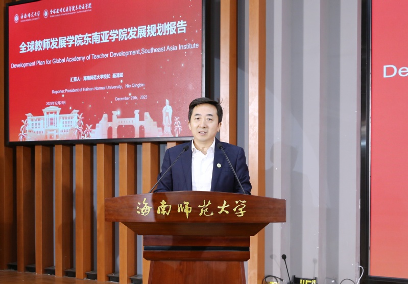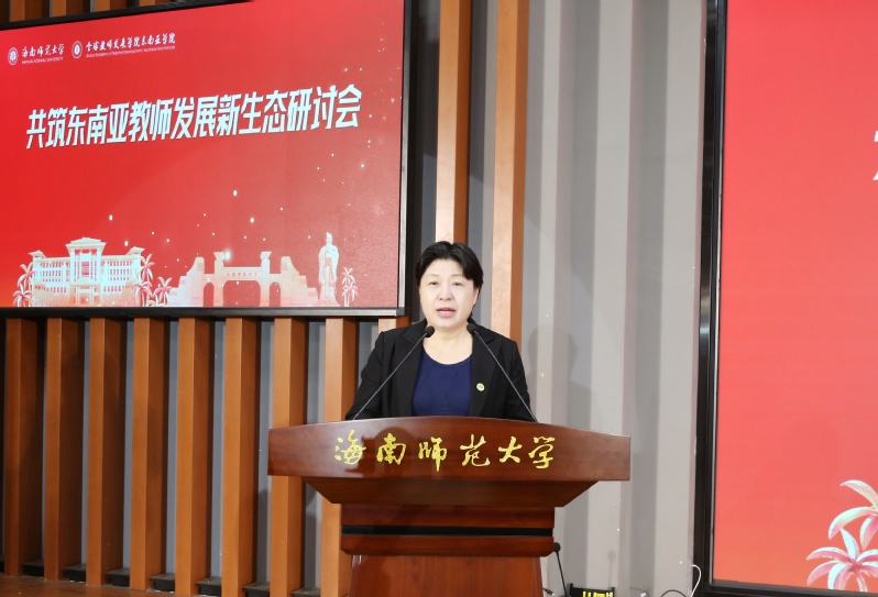 黄小华在致辞中指出,全球教师发展学院东南亚学院落户海南师范大学,是政策红利与办学优势的精准契合,是服务教育强国战略、深化中国-东南亚教育合作,落实“周边是首要”外交战略的生动实践。希望学校勇当教育开放先行者,努力探索区域协同新模式,以数字赋能教师专业发展,积极参与和推动区域性全球性教师教育标准与评价体系的对话合作,为构建人类命运共同体贡献教育力量。