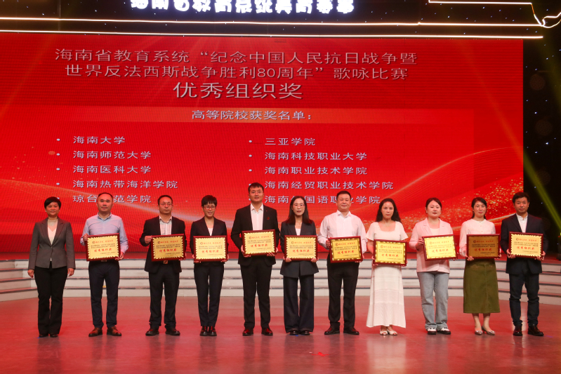 近期,由中共海南省委教育工作委员会、海南省教育厅主办的“纪念中国人民抗日战争暨世界反法西斯战争胜利80周年”歌咏比赛颁奖晚会在海口市融媒体中心落下帷幕。我校选送的专业组及非专业组合唱、表演唱、独唱等6个作品在比赛中取得佳绩。