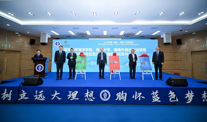 1月10日,2026年中国(海南)-东盟人文交流论坛在海南三亚举行。论坛期间,由海南师范大学外语学科博士点负责人陈义华教授主持完成的国家语委重大项目《海南自由贸易港语言服务研究》成果正式发布。陈义华教授、海南大学副校长张法连教授、海南热带海洋学院副校长杨学前教授代表研究团队为成果揭封。