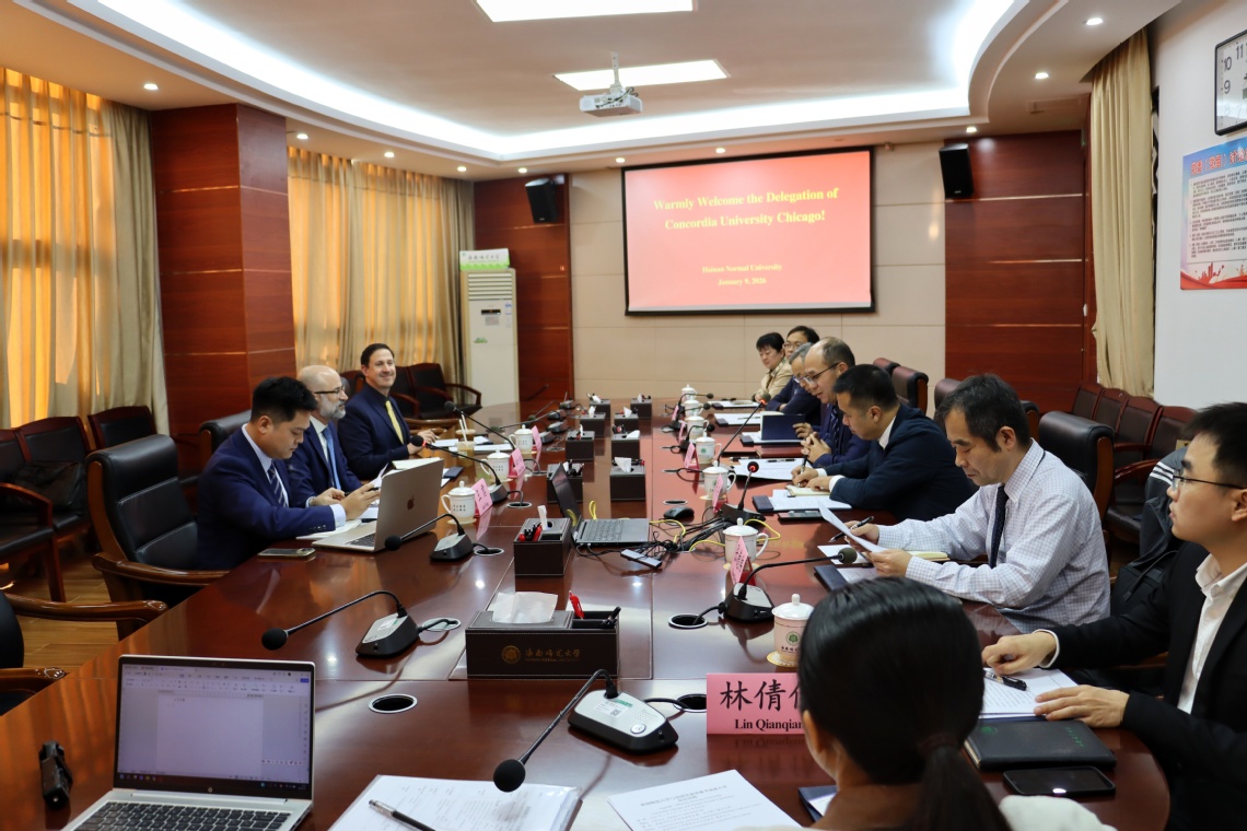 1月9日下午,美国芝加哥康考迪亚大学(Concordia University Chicago)校长拉塞尔·道恩(Russell P.Dawn)一行访问我校。副校长徐基良在龙昆南校区第一办公楼三楼会议室会见来宾。