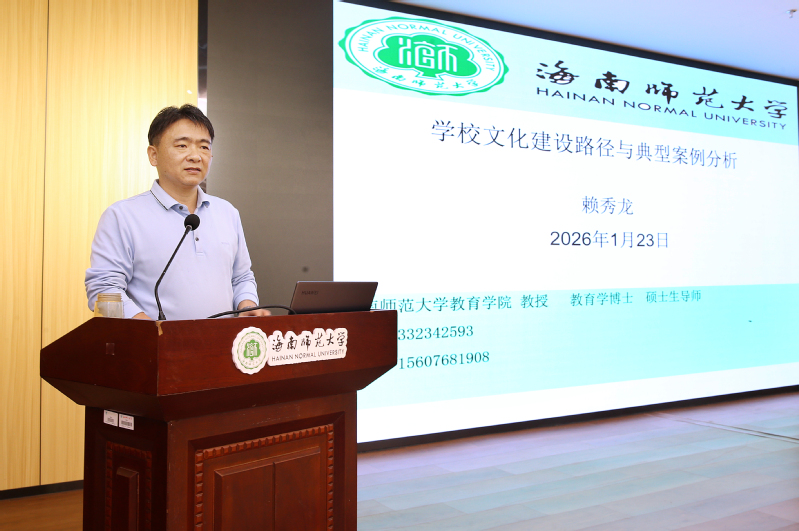 在随后举办的“扬帆行动”大讲堂上,我校赖秀龙教授作题为《学校文化建设路径与典型案例分析》的专题报告。