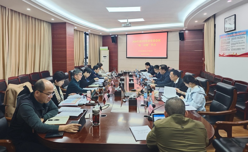 1月22日,学校党委常委会召开2026年第2次会议,“第一议题”传达学习习近平总书记在省部级主要领导干部学习贯彻党的二十届四中全会精神专题研讨班开班式上的重要讲话精神。校党委书记许玫主持会议。