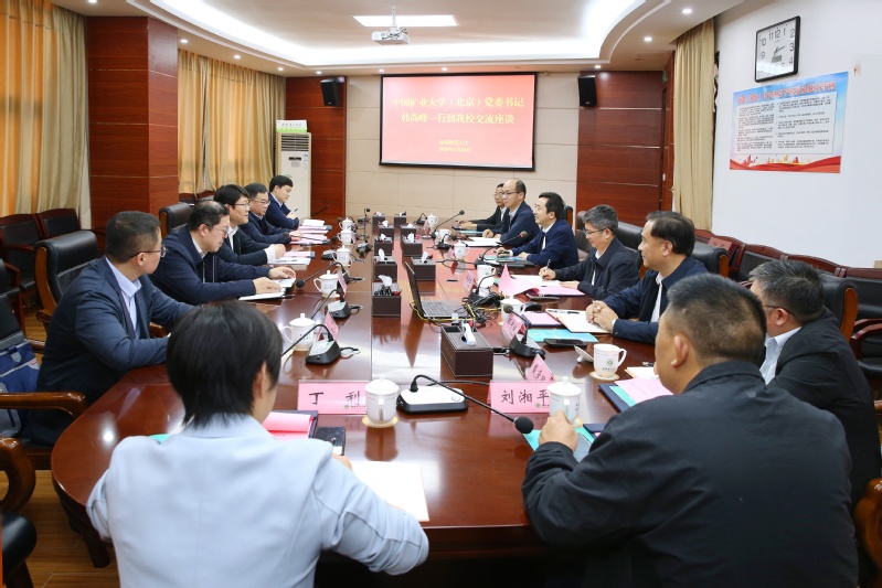 1月26 日下午,中国矿业大学(北京)党委书记韩尚峰来访我校,校长聂清斌在龙昆南校区会见韩尚峰一行,双方围绕高校转型发展、科研合作、人才培养等核心议题展开深入交流。校党委常委、副校长杨兹举,副校长徐基良,党委常委邓志斌、程掀出席座谈会。