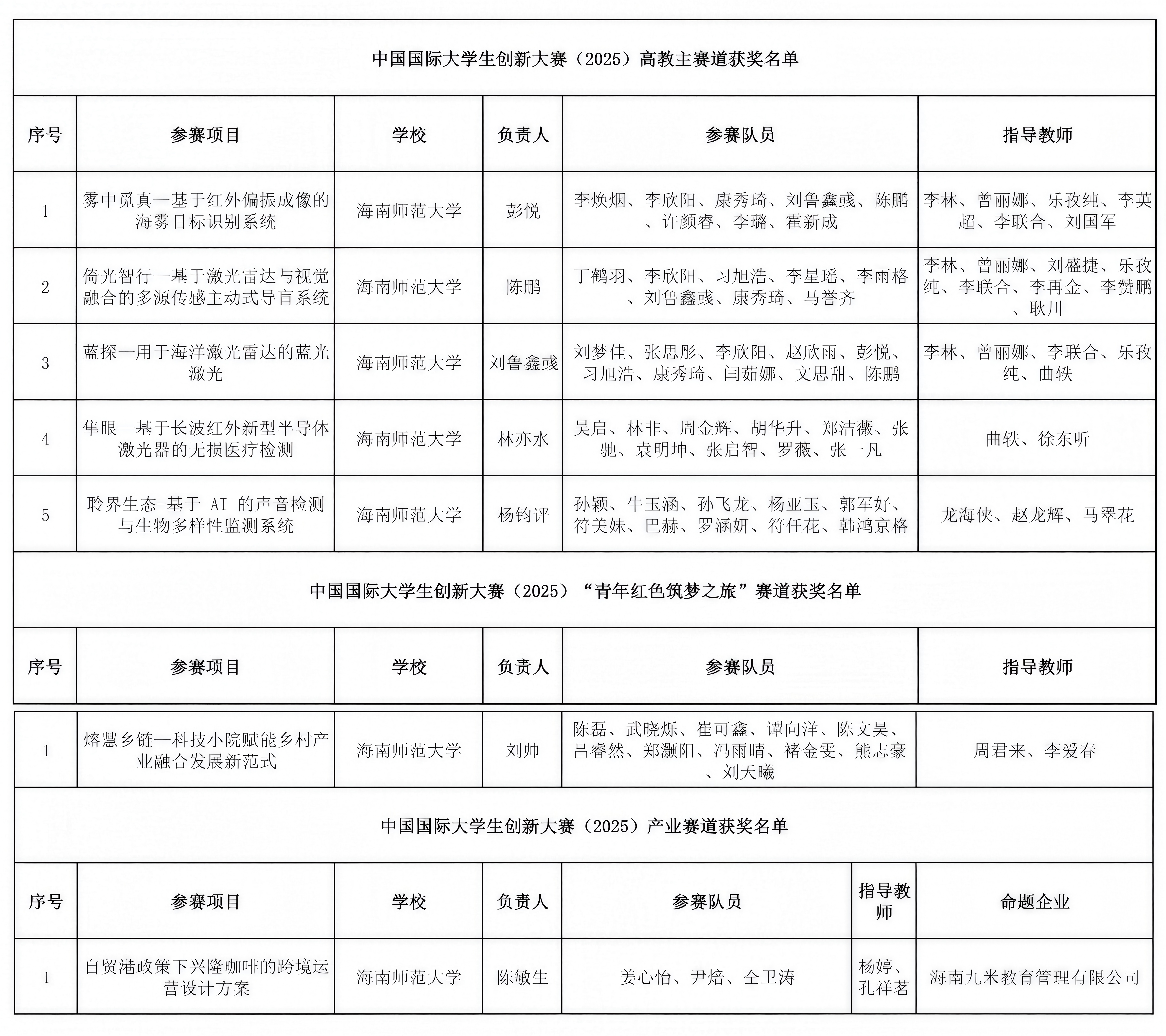 本届大赛由教育部等国家部委与河南省人民政府共同主办,共吸引来自5673所学校的619万个项目报名参赛,参赛人次高达2443万人次,赛事规模再创新高。在竞争空前激烈的高水平赛事平台上,我校学子不畏强手、奋勇争先,最终在多个赛道斩获佳绩,彰显了海师学子锐意进取、勇于创新的精神风貌,以及学校在创新创业教育领域持续深耕、系统推进的扎实成效。