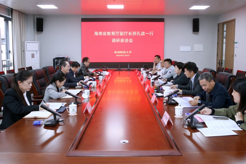 3月4日下午,海南省教育厅党组成员、副厅长邢孔政一行到我校调研在建工程项目推进工作。调研座谈会在桂林洋校区综合楼四楼会议室举行。校党委书记许玫主持,副校长张引出席座谈会。