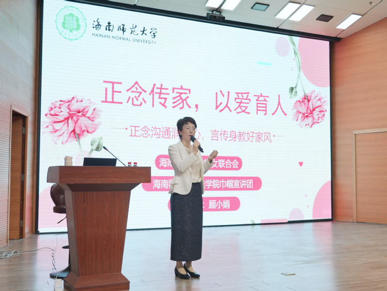 3月22日,海南师范大学巾帼宣讲团“正念传家,以爱育人——正念沟通破解亲子困境,培育优良家风”主题宣讲在海南省图书馆报告厅举行。