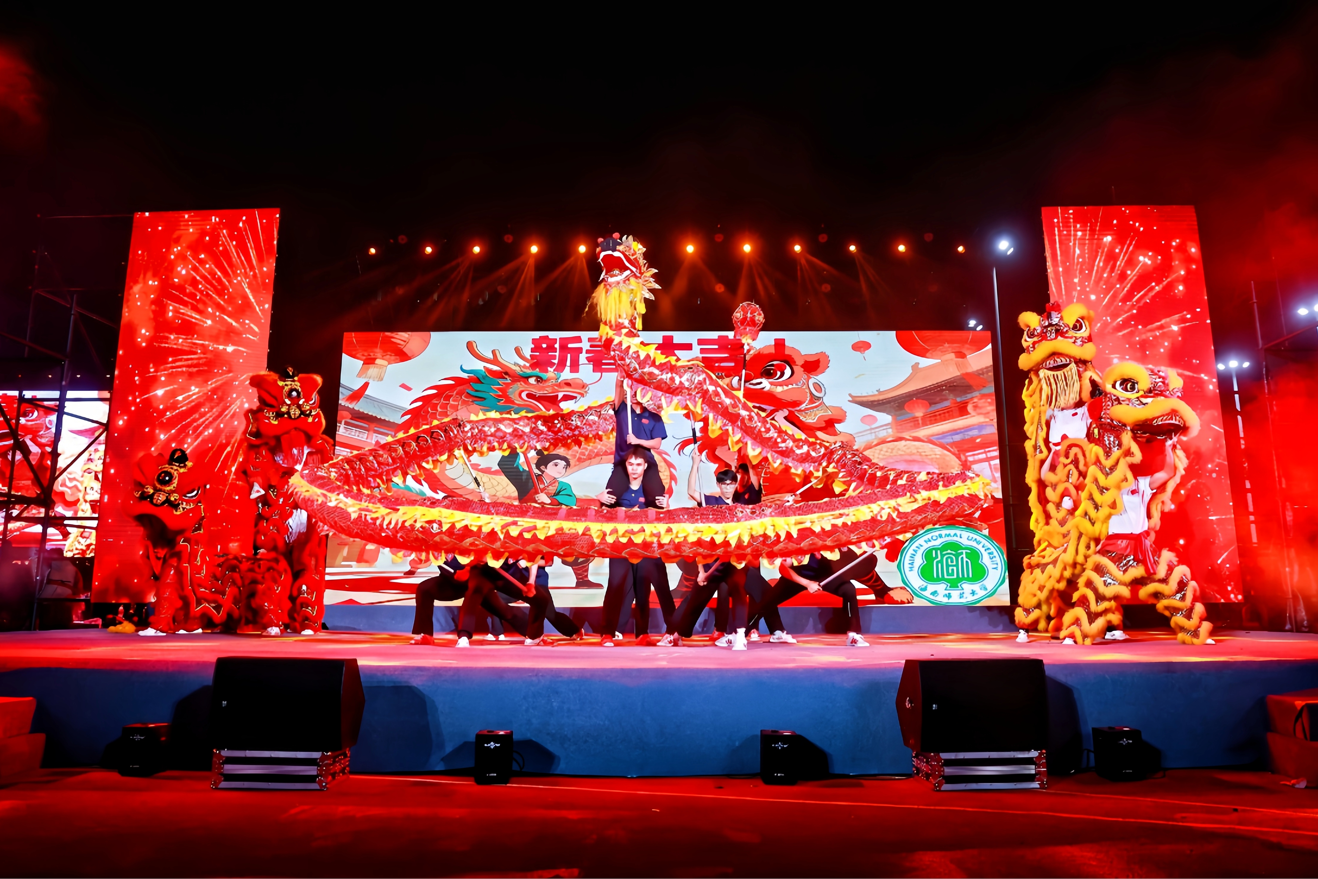 椰风送暖辞旧岁,华灯璀璨迎新年。12月31日晚,海南师范大学2026年元旦游园活动分别在龙昆南校区与桂林洋校区温情启幕,校党委书记许玫、校长聂清斌宣布游园活动正式开始。全体校党政领导班子成员,各机关教辅单位及学院党政负责人欢聚一堂,共迎新春。副校长张引、王瑜分别主持两校区游园开幕式。夜色温柔,灯火如织。在洋溢青春活力的文艺表演中,元旦游园正式拉开帷幕。校党委副书记符刘才、副校长杨兹举分别在两校区发表新年贺词,向全校师生、广大校友和关心支持学校发展的社会各界人士致以节日的问候。他们指出,2025年学校坚持党建引领,推动立德树人展现新成效,办学实力实现新跨越,服务海南彰显新作为,开放办学构建新格局
